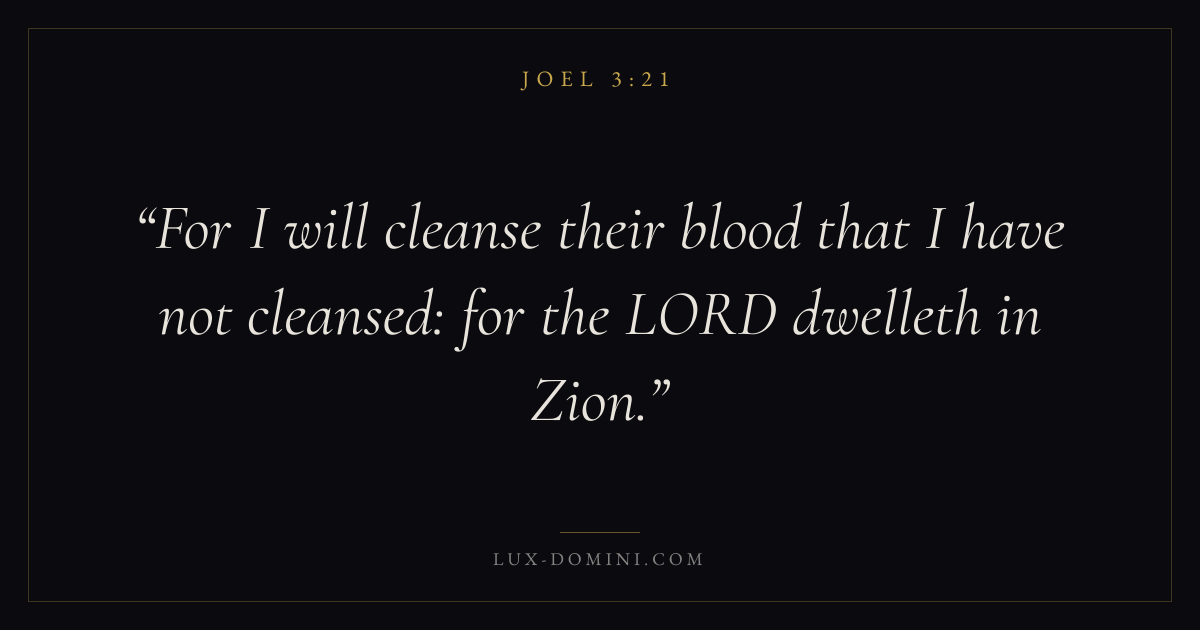 For I will cleanse their blood that I have not cleansed: for the LORD dwelleth in Zion.
