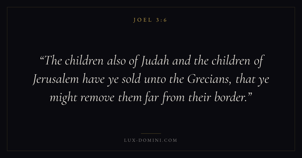 The children also of Judah and the children of Jerusalem have ye sold unto the Grecians, that ye might remove them far from their border.