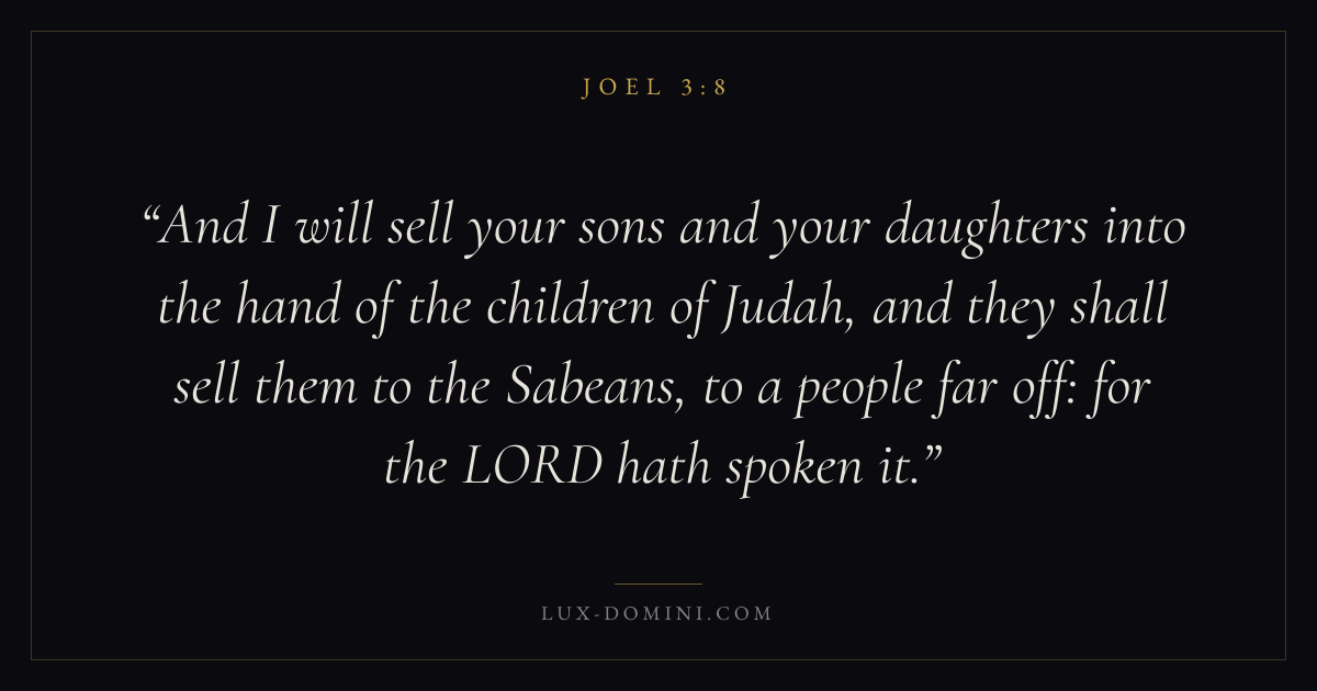 And I will sell your sons and your daughters into the hand of the children of Judah, and they shall sell them to the Sabeans, to a people far off: for the LORD hath spoken it.