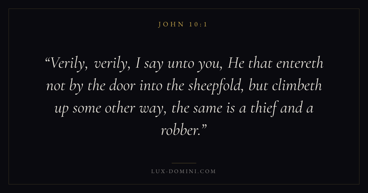 Verily, verily, I say unto you, He that entereth not by the door into the sheepfold, but climbeth up some other way, the same is a thief and a robber.