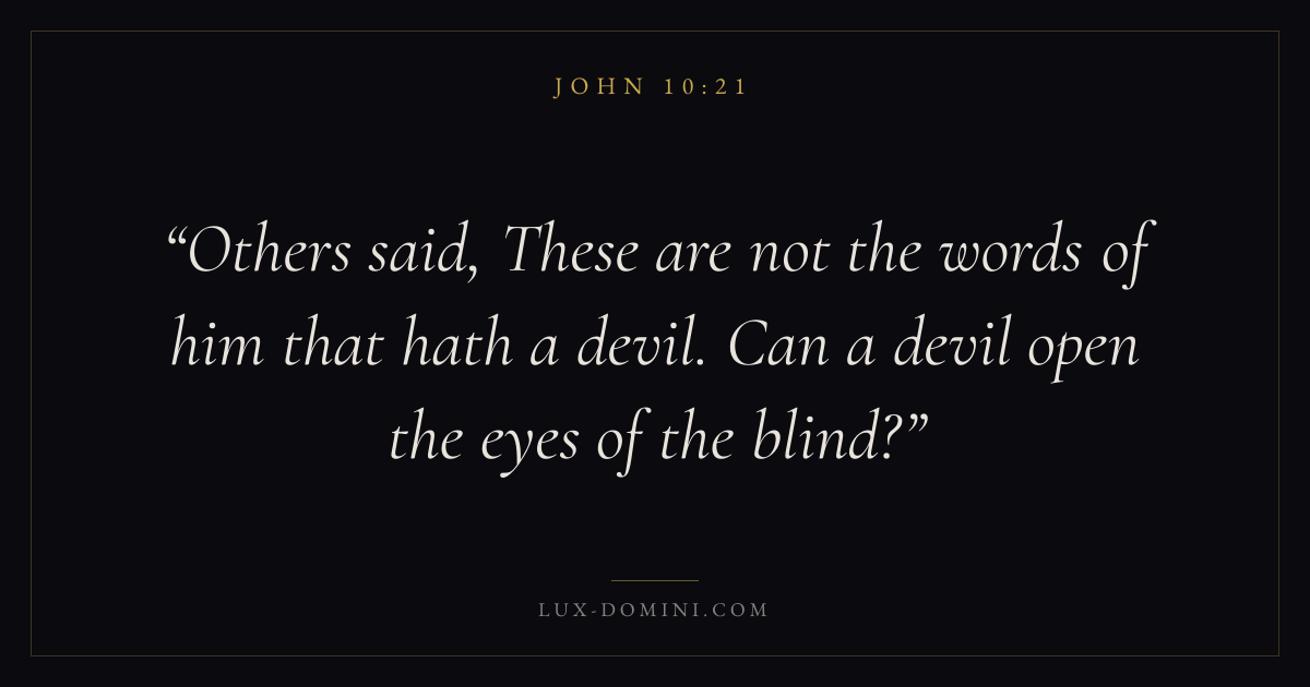 Others said, These are not the words of him that hath a devil. Can a devil open the eyes of the blind?