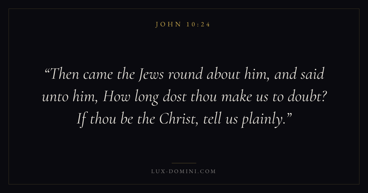 Then came the Jews round about him, and said unto him, How long dost thou make us to doubt? If thou be the Christ, tell us plainly.