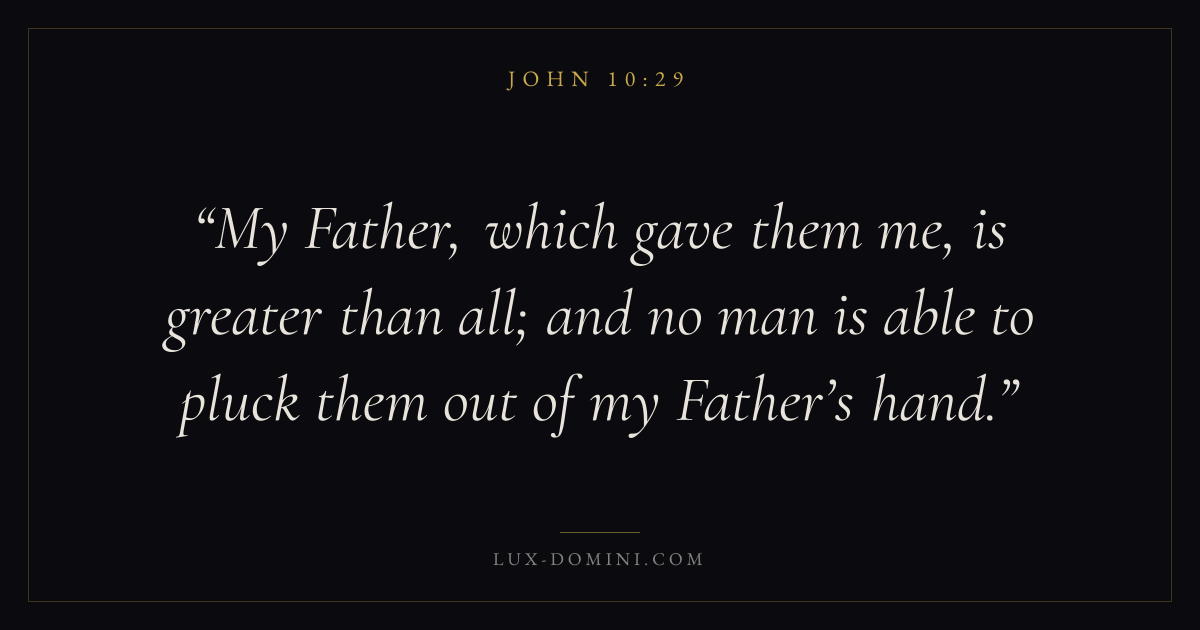 My Father, which gave them me, is greater than all; and no man is able to pluck them out of my Father’s hand.