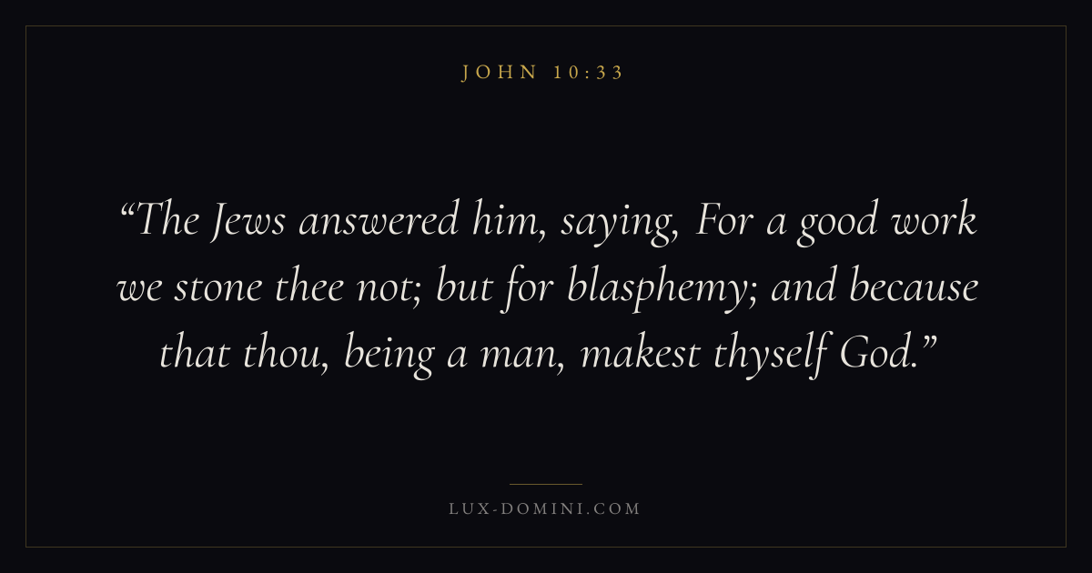 The Jews answered him, saying, For a good work we stone thee not; but for blasphemy; and because that thou, being a man, makest thyself God.