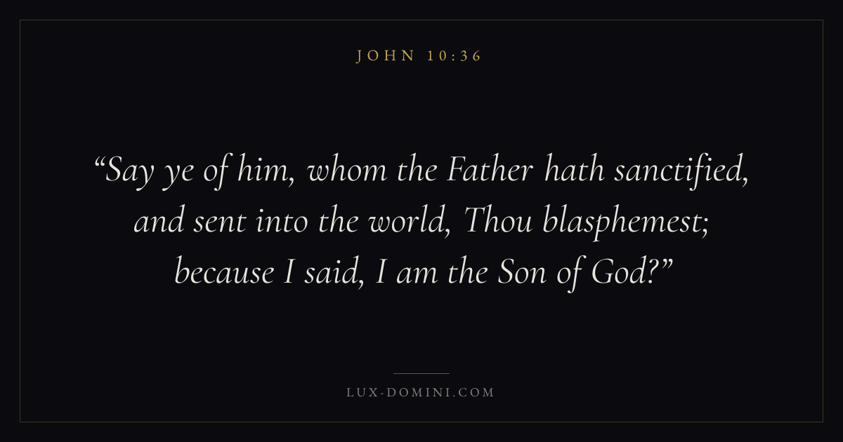 Say ye of him, whom the Father hath sanctified, and sent into the world, Thou blasphemest; because I said, I am the Son of God?