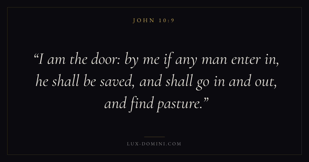 I am the door: by me if any man enter in, he shall be saved, and shall go in and out, and find pasture.