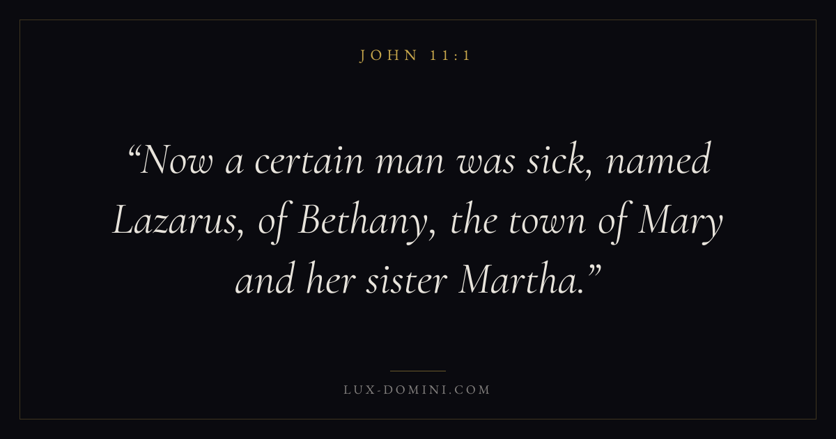 Now a certain man was sick, named Lazarus, of Bethany, the town of Mary and her sister Martha.