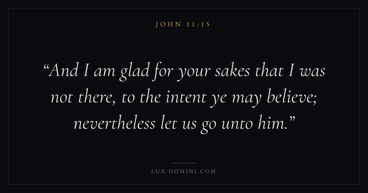 And I am glad for your sakes that I was not there, to the intent ye may believe; nevertheless let us go unto him.