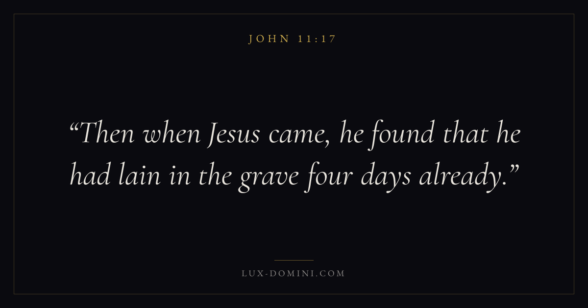 Then when Jesus came, he found that he had lain in the grave four days already.