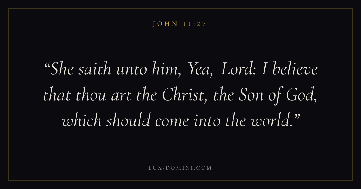 She saith unto him, Yea, Lord: I believe that thou art the Christ, the Son of God, which should come into the world.