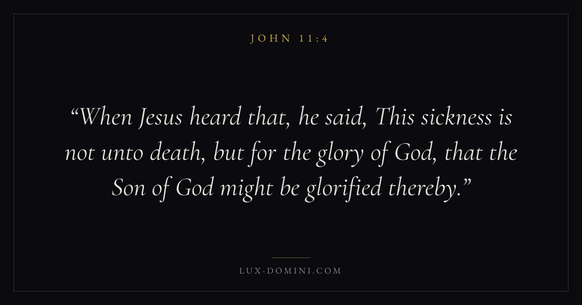When Jesus heard that, he said, This sickness is not unto death, but for the glory of God, that the Son of God might be glorified thereby.