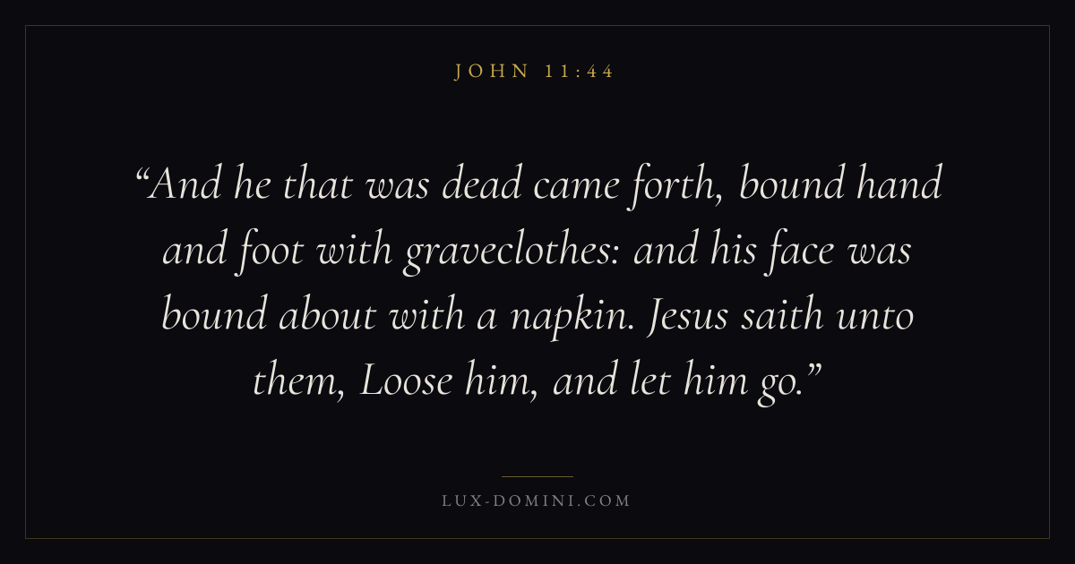 And he that was dead came forth, bound hand and foot with graveclothes: and his face was bound about with a napkin. Jesus saith unto them, Loose him, and let him go.