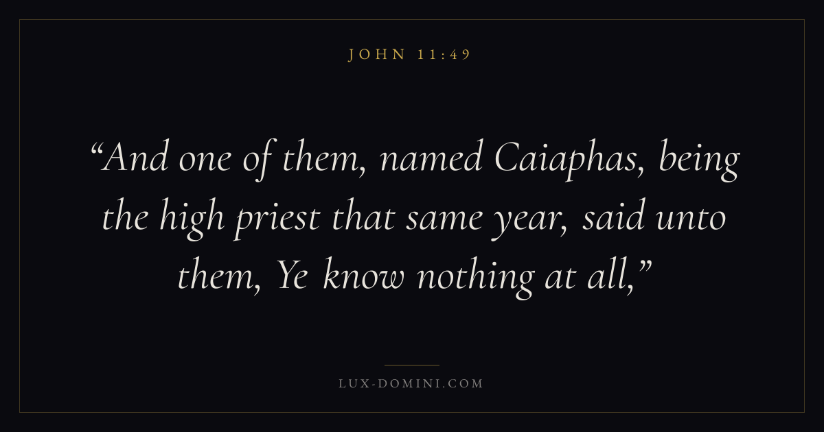 And one of them, named Caiaphas, being the high priest that same year, said unto them, Ye know nothing at all,