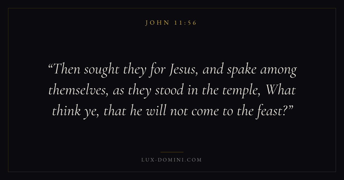 Then sought they for Jesus, and spake among themselves, as they stood in the temple, What think ye, that he will not come to the feast?