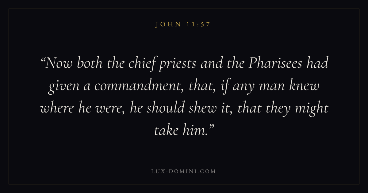Now both the chief priests and the Pharisees had given a commandment, that, if any man knew where he were, he should shew it, that they might take him.