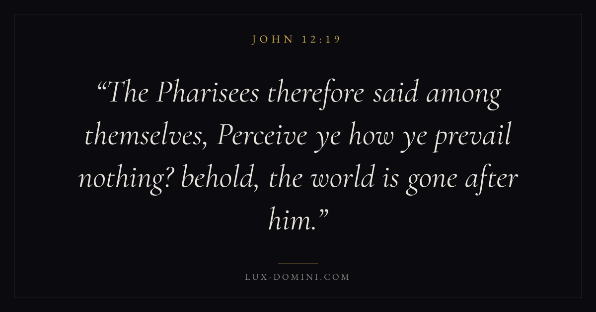 The Pharisees therefore said among themselves, Perceive ye how ye prevail nothing? behold, the world is gone after him.
