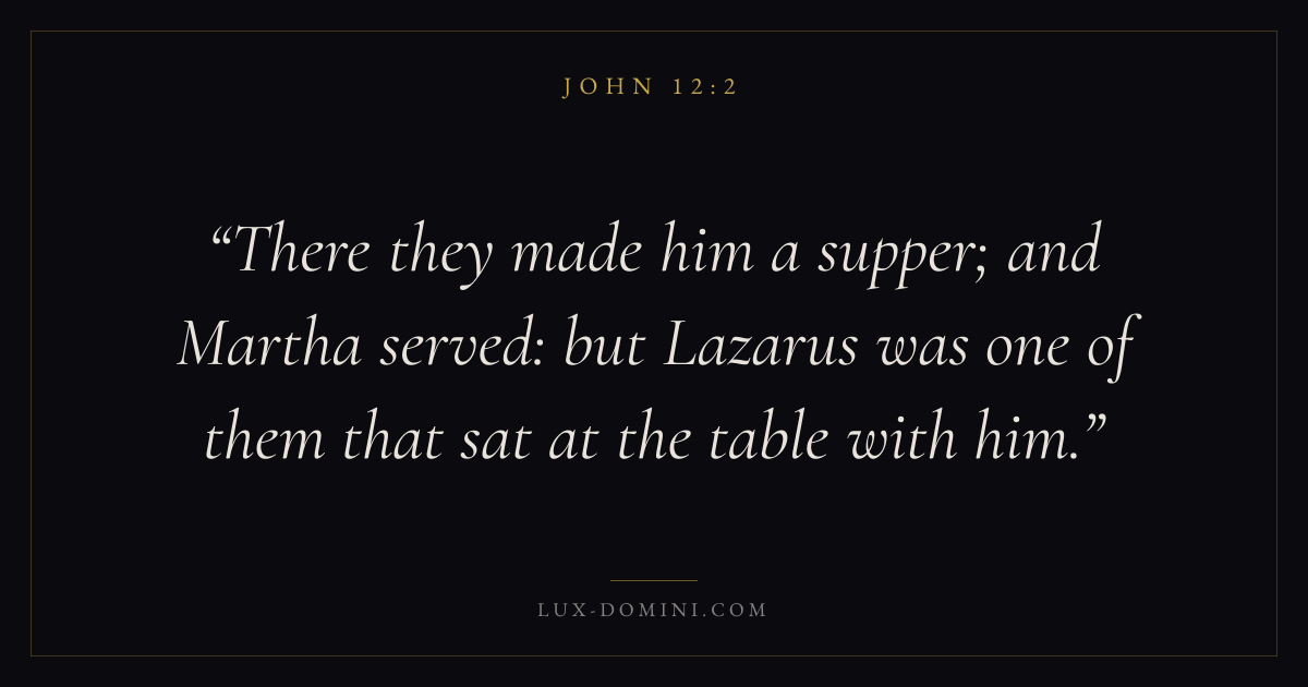 There they made him a supper; and Martha served: but Lazarus was one of them that sat at the table with him.