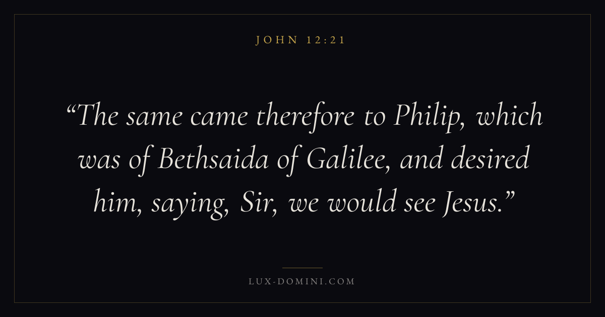 The same came therefore to Philip, which was of Bethsaida of Galilee, and desired him, saying, Sir, we would see Jesus.
