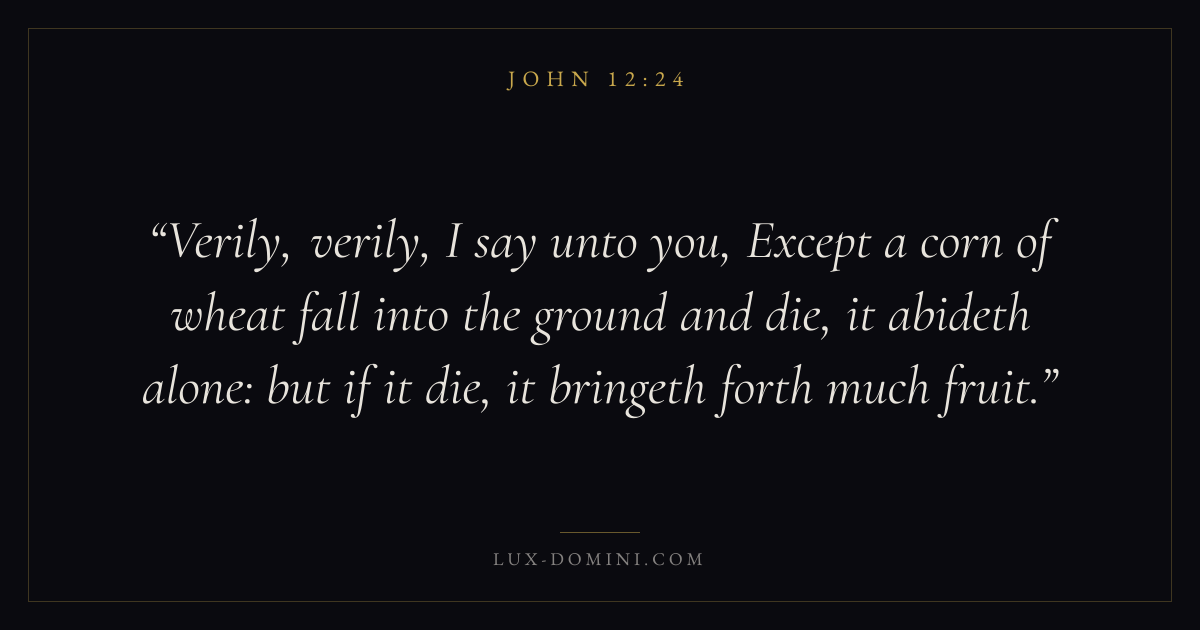 Verily, verily, I say unto you, Except a corn of wheat fall into the ground and die, it abideth alone: but if it die, it bringeth forth much fruit.