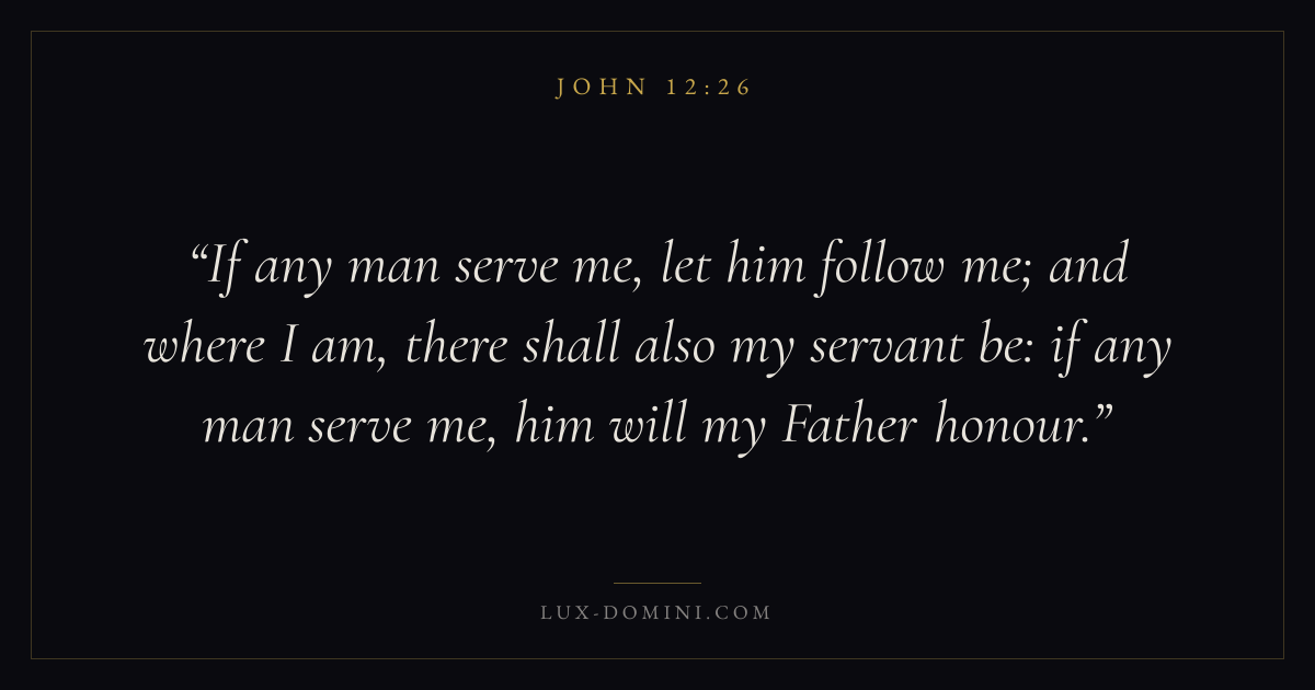 If any man serve me, let him follow me; and where I am, there shall also my servant be: if any man serve me, him will my Father honour.