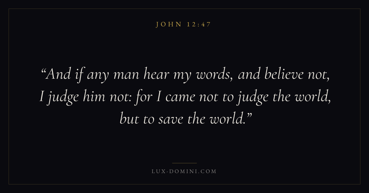 And if any man hear my words, and believe not, I judge him not: for I came not to judge the world, but to save the world.