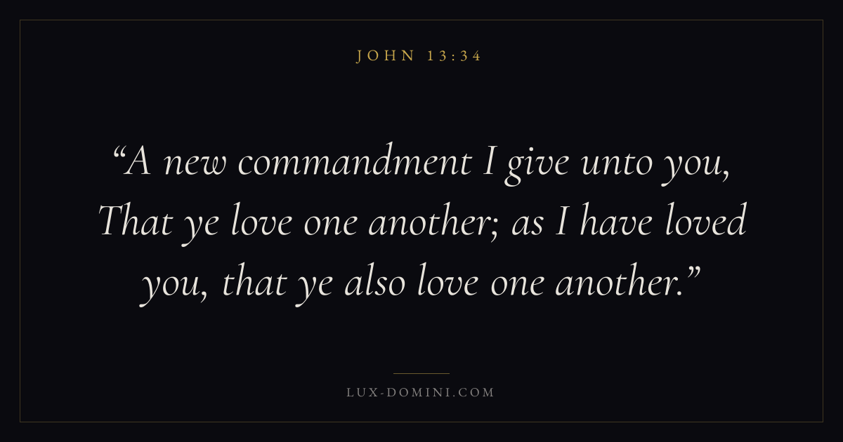 A new commandment I give unto you, That ye love one another; as I have loved you, that ye also love one another.
