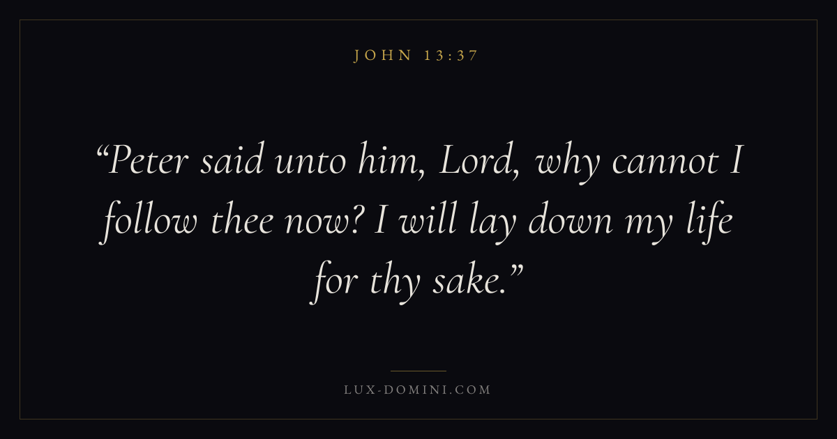 Peter said unto him, Lord, why cannot I follow thee now? I will lay down my life for thy sake.