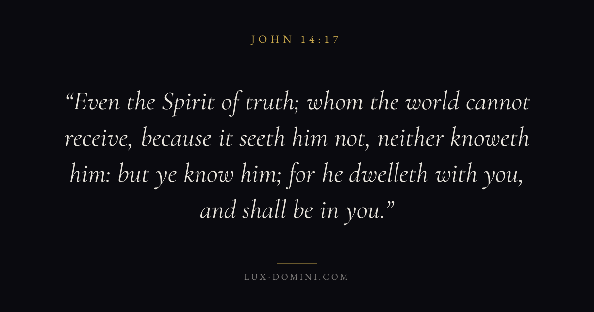 Even the Spirit of truth; whom the world cannot receive, because it seeth him not, neither knoweth him: but ye know him; for he dwelleth with you, and shall be in you.