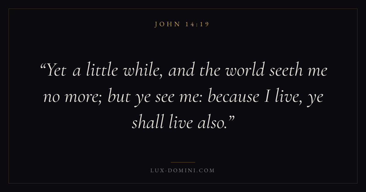 Yet a little while, and the world seeth me no more; but ye see me: because I live, ye shall live also.