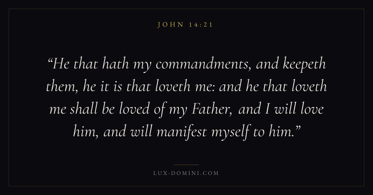 He that hath my commandments, and keepeth them, he it is that loveth me: and he that loveth me shall be loved of my Father, and I will love him, and will manifest myself to him.