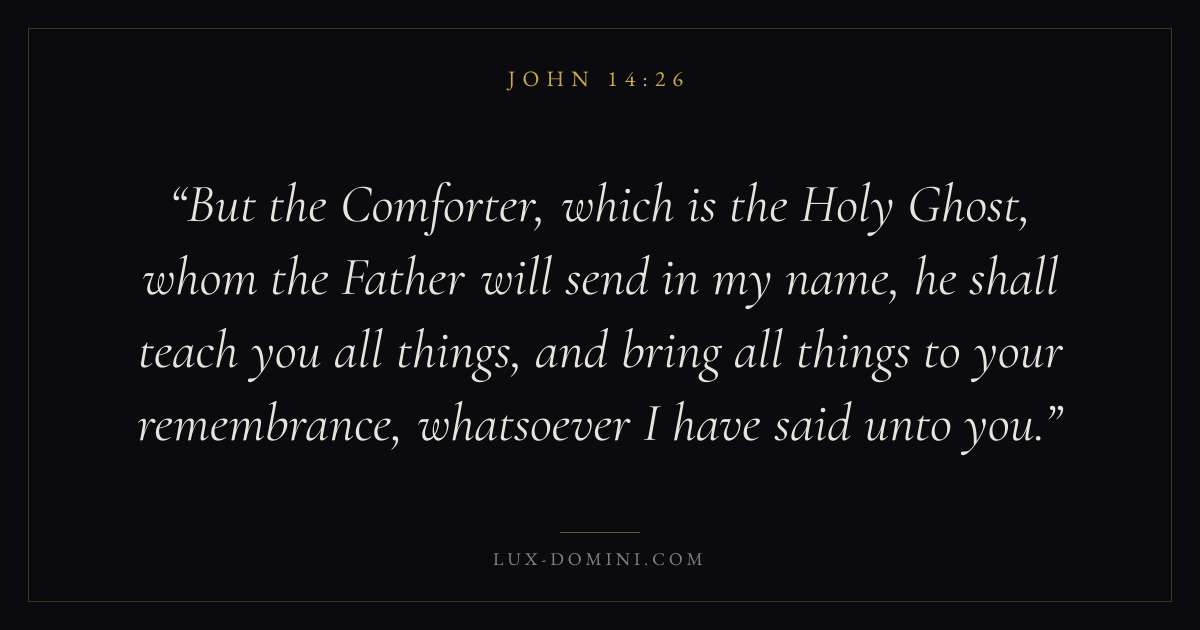 But the Comforter, which is the Holy Ghost, whom the Father will send in my name, he shall teach you all things, and bring all things to your remembrance, whatsoever I have said unto you.