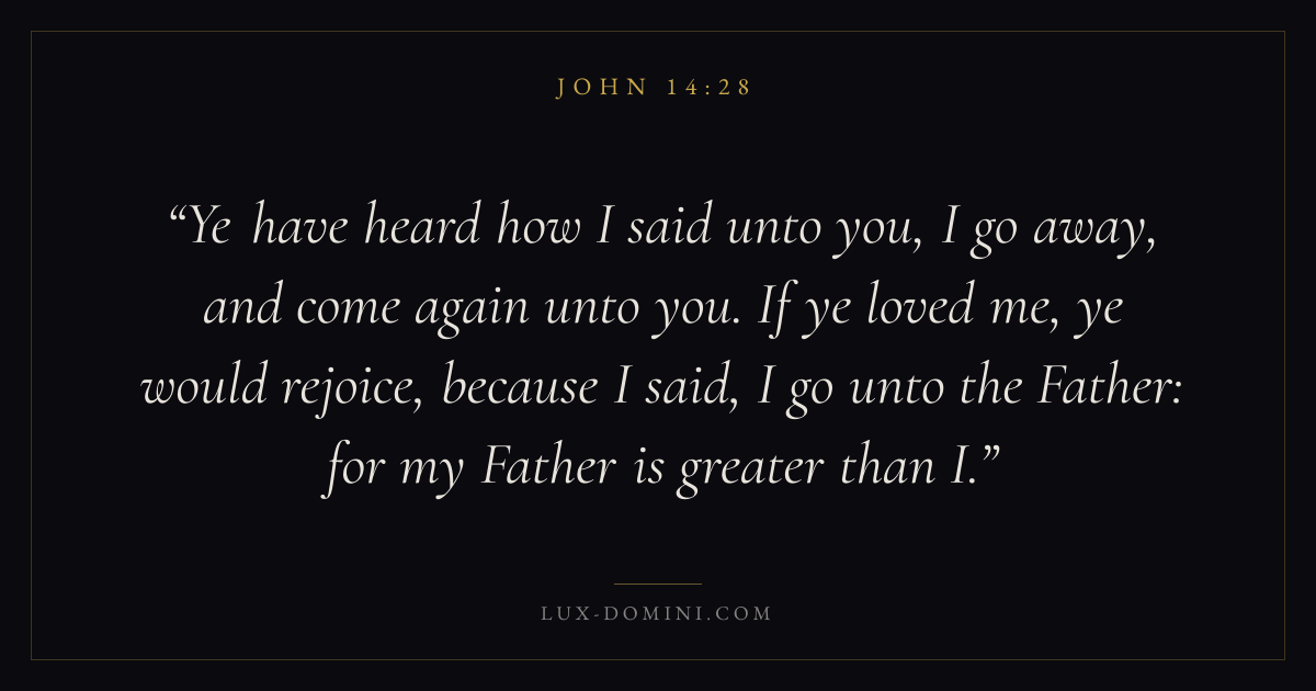 Ye have heard how I said unto you, I go away, and come again unto you. If ye loved me, ye would rejoice, because I said, I go unto the Father: for my Father is greater than I.