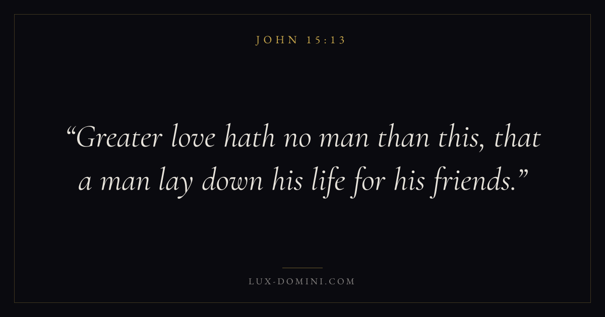 Greater love hath no man than this, that a man lay down his life for his friends.