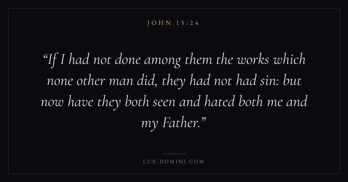 If I had not done among them the works which none other man did, they had not had sin: but now have they both seen and hated both me and my Father.
