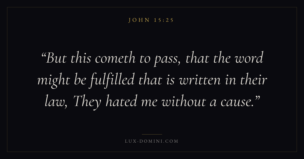 But this cometh to pass, that the word might be fulfilled that is written in their law, They hated me without a cause.
