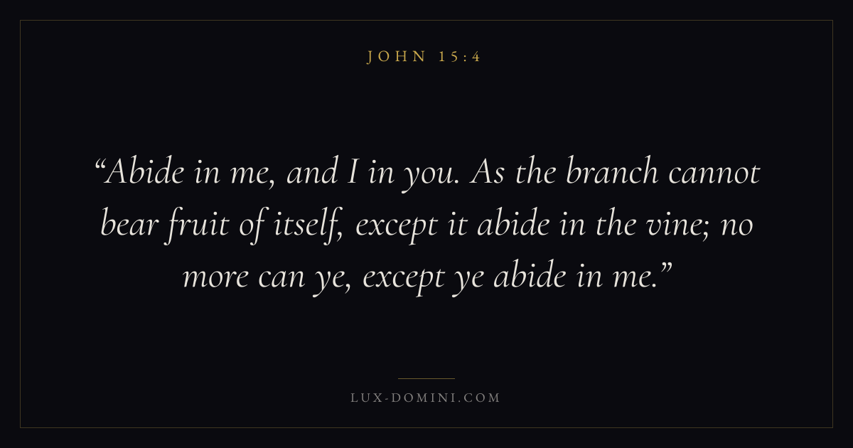 Abide in me, and I in you. As the branch cannot bear fruit of itself, except it abide in the vine; no more can ye, except ye abide in me.
