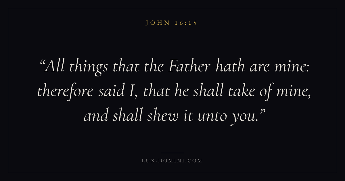 All things that the Father hath are mine: therefore said I, that he shall take of mine, and shall shew it unto you.