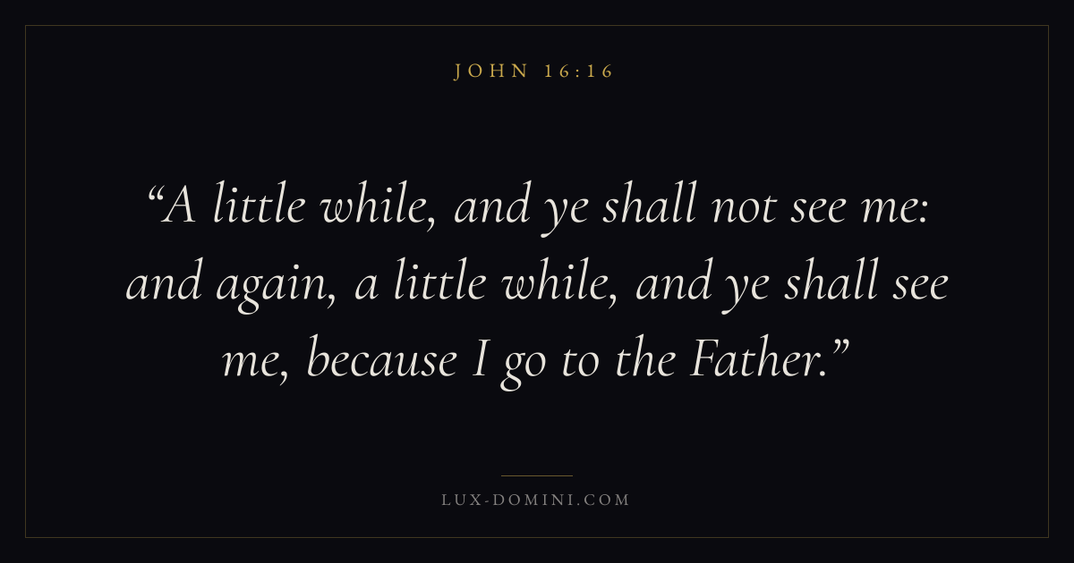 A little while, and ye shall not see me: and again, a little while, and ye shall see me, because I go to the Father.