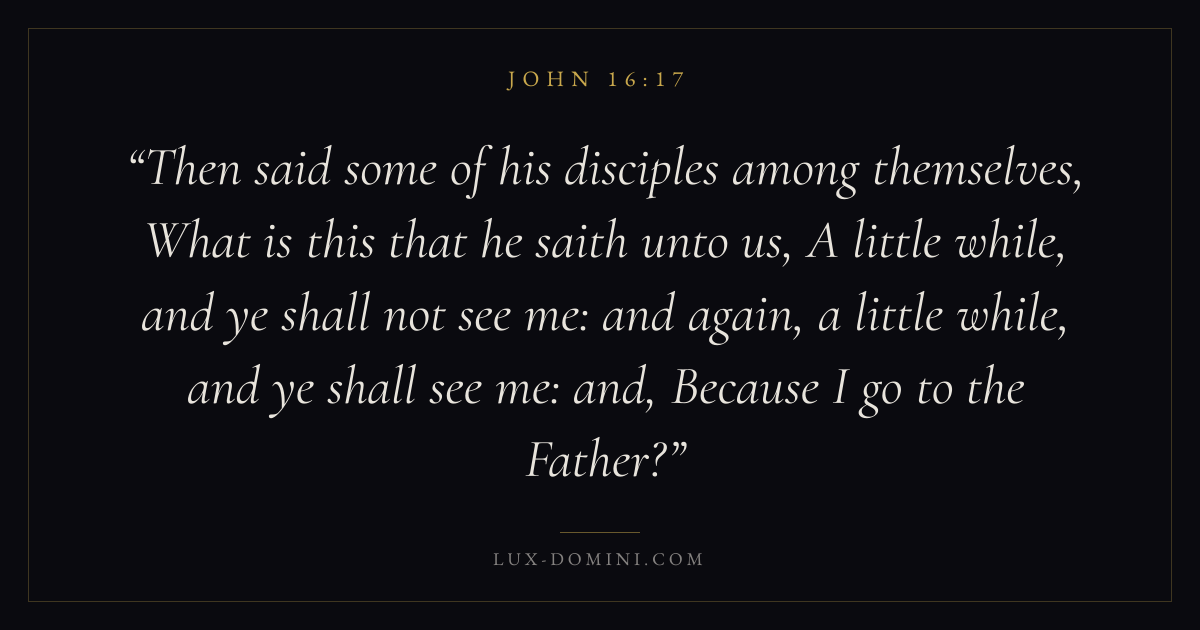 Then said some of his disciples among themselves, What is this that he saith unto us, A little while, and ye shall not see me: and again, a little while, and ye shall see me: and, Because I go to the Father?