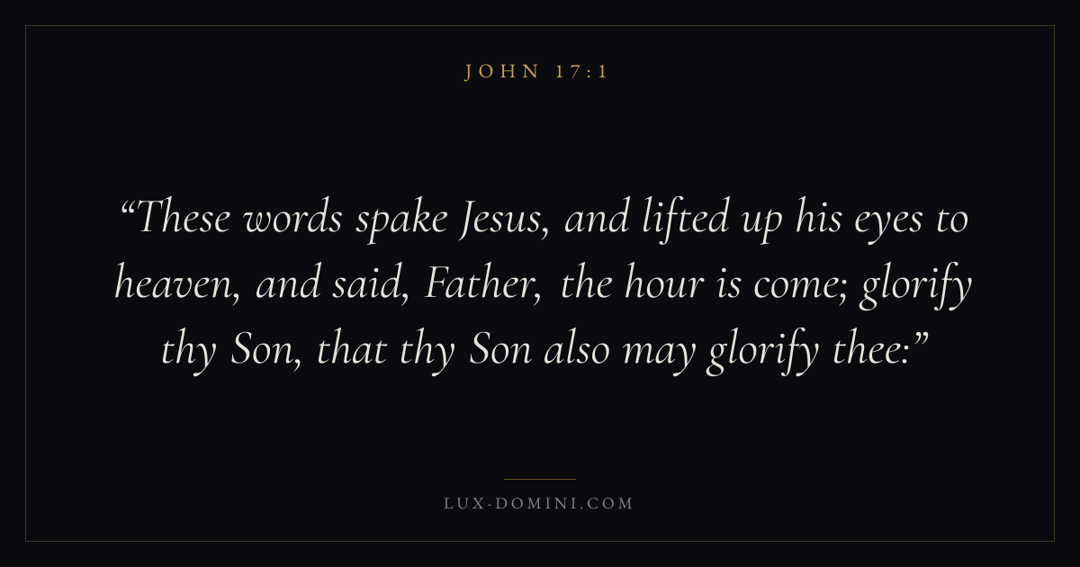 These words spake Jesus, and lifted up his eyes to heaven, and said, Father, the hour is come; glorify thy Son, that thy Son also may glorify thee:
