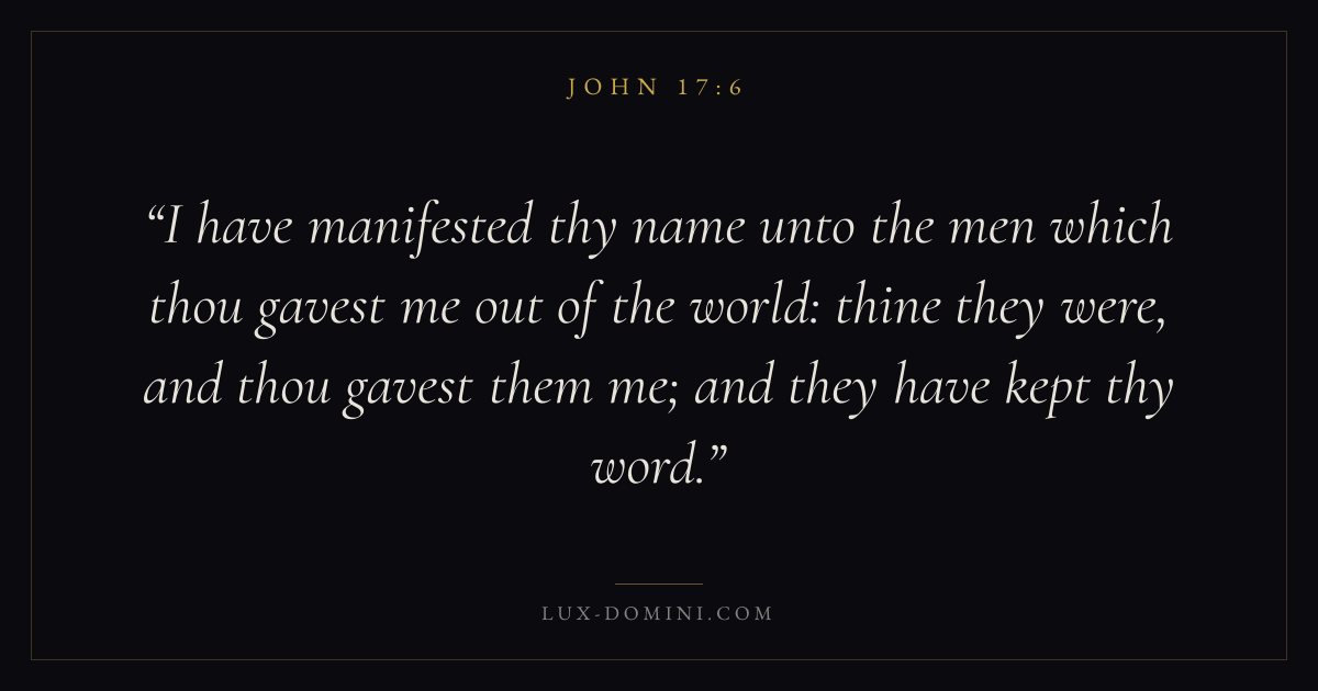 I have manifested thy name unto the men which thou gavest me out of the world: thine they were, and thou gavest them me; and they have kept thy word.