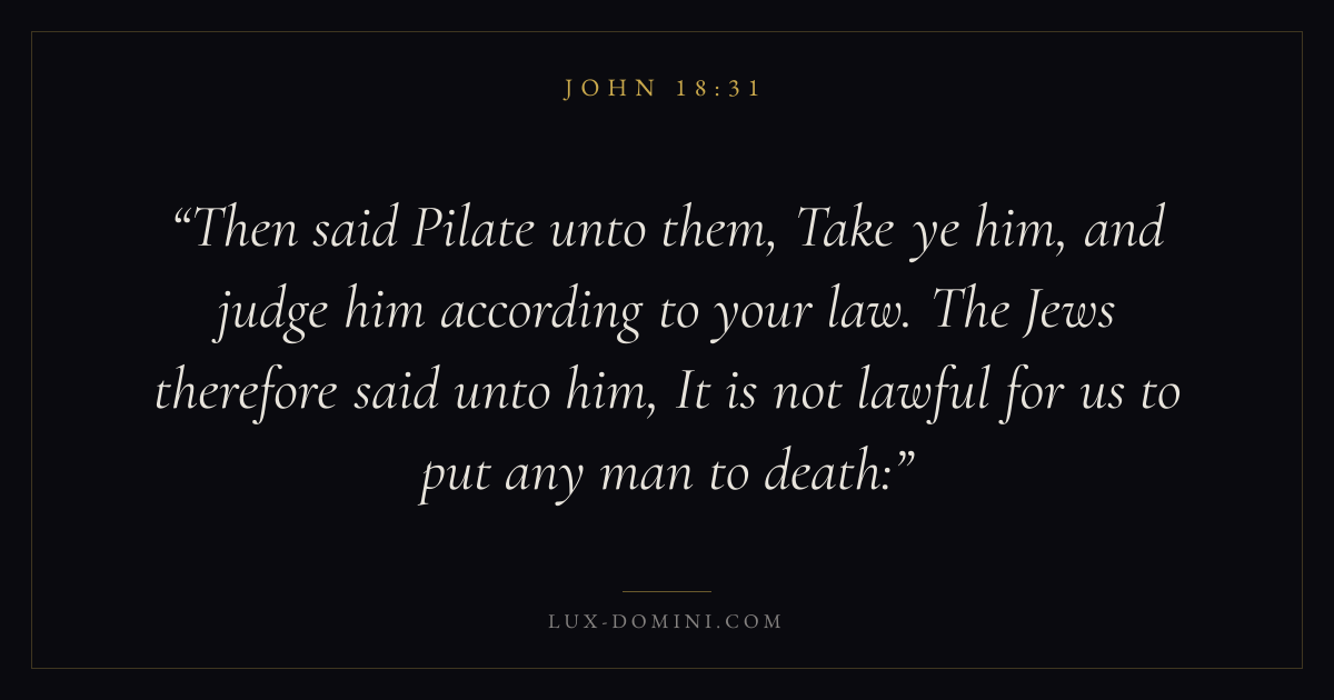 Then said Pilate unto them, Take ye him, and judge him according to your law. The Jews therefore said unto him, It is not lawful for us to put any man to death: