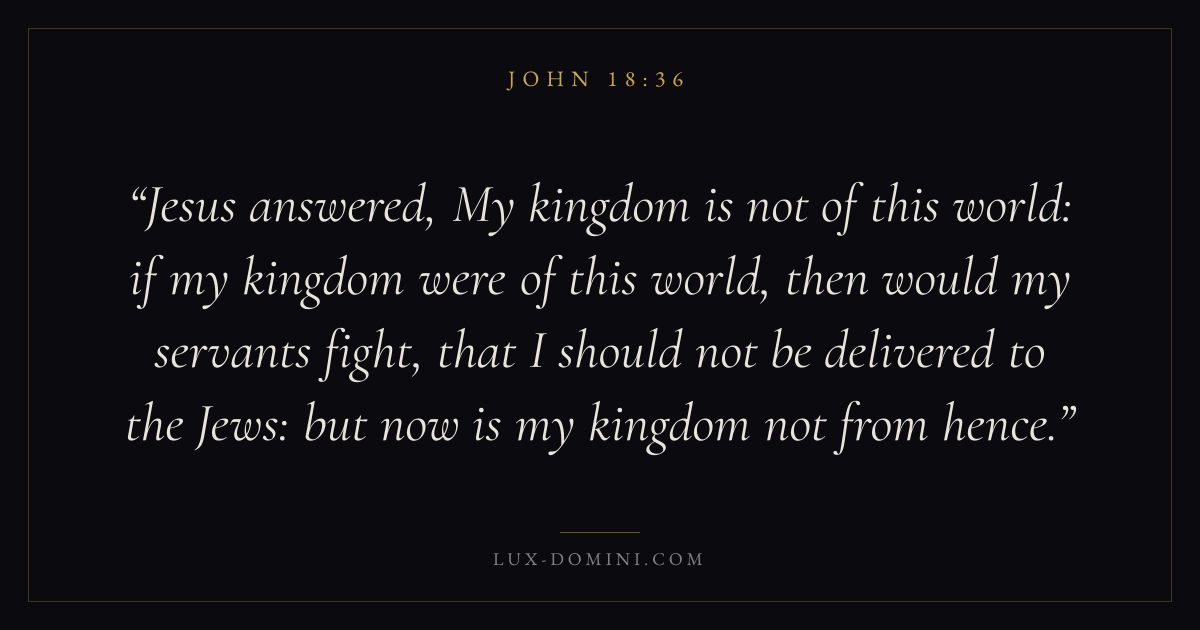 Jesus answered, My kingdom is not of this world: if my kingdom were of this world, then would my servants fight, that I should not be delivered to the Jews: but now is my kingdom not from hence.