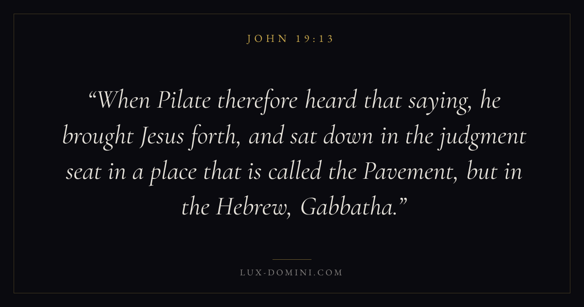 When Pilate therefore heard that saying, he brought Jesus forth, and sat down in the judgment seat in a place that is called the Pavement, but in the Hebrew, Gabbatha.