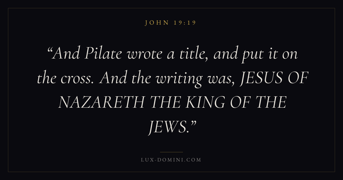 And Pilate wrote a title, and put it on the cross. And the writing was, JESUS OF NAZARETH THE KING OF THE JEWS.