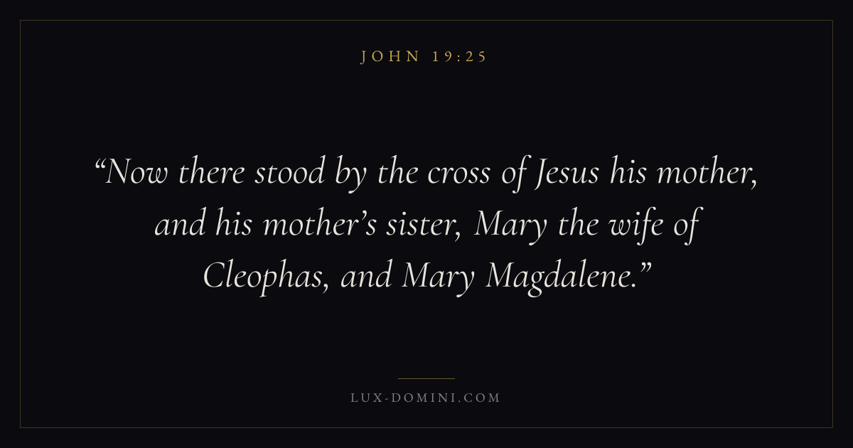 Now there stood by the cross of Jesus his mother, and his mother’s sister, Mary the wife of Cleophas, and Mary Magdalene.
