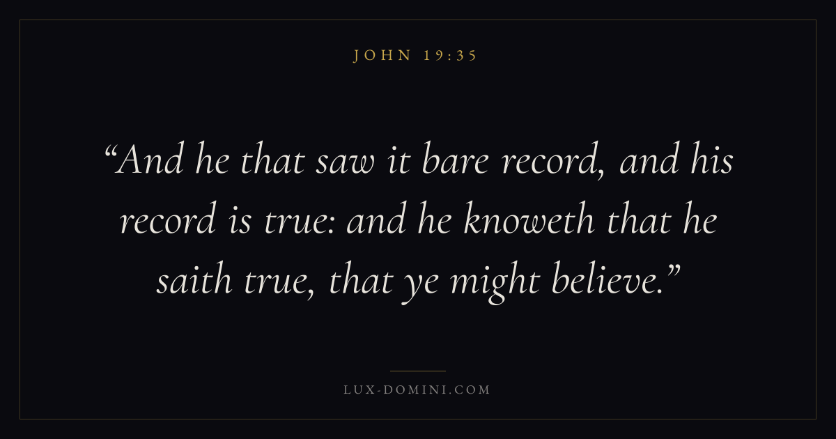 And he that saw it bare record, and his record is true: and he knoweth that he saith true, that ye might believe.