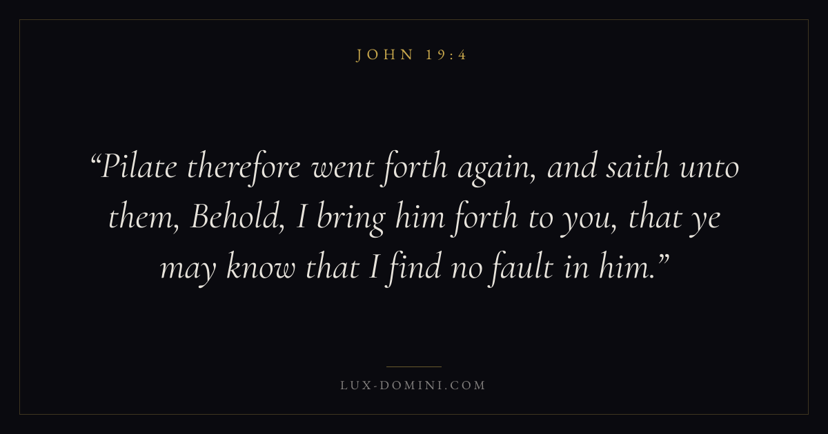 Pilate therefore went forth again, and saith unto them, Behold, I bring him forth to you, that ye may know that I find no fault in him.