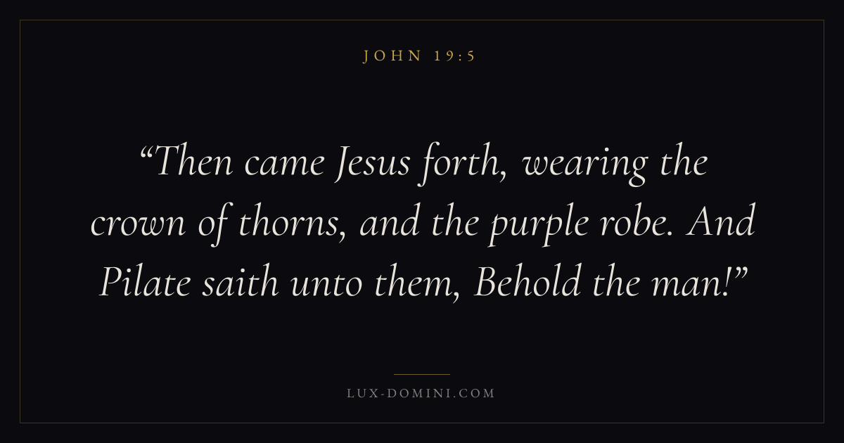Then came Jesus forth, wearing the crown of thorns, and the purple robe. And Pilate saith unto them, Behold the man!
