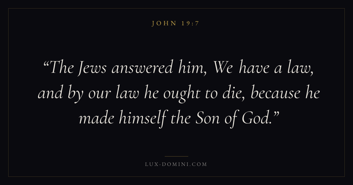 The Jews answered him, We have a law, and by our law he ought to die, because he made himself the Son of God.